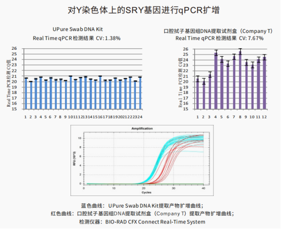 由图可见,对比对照组(Company T)的试剂盒,新百基试剂盒提取得到的DNA产物浓度高,稳定性好。